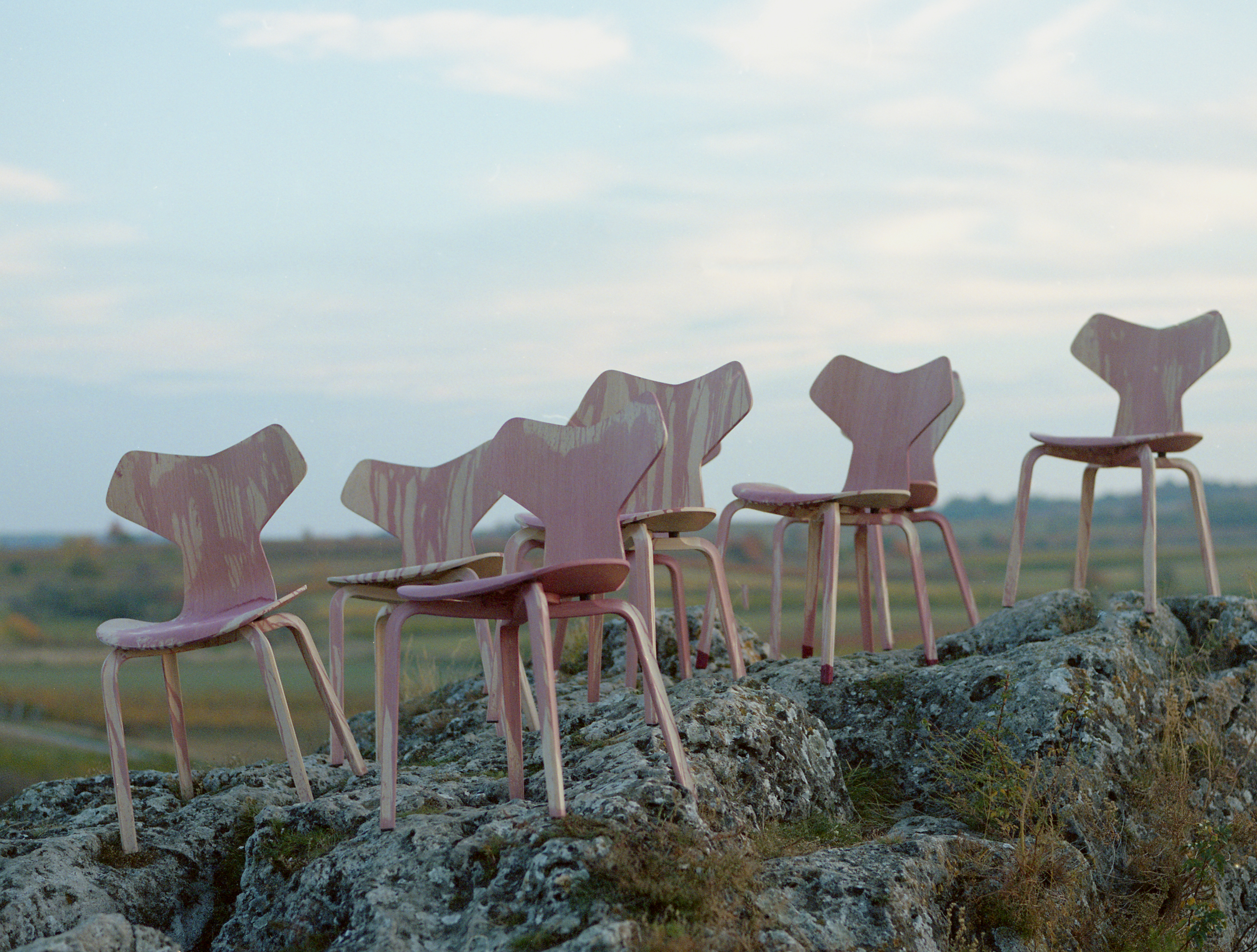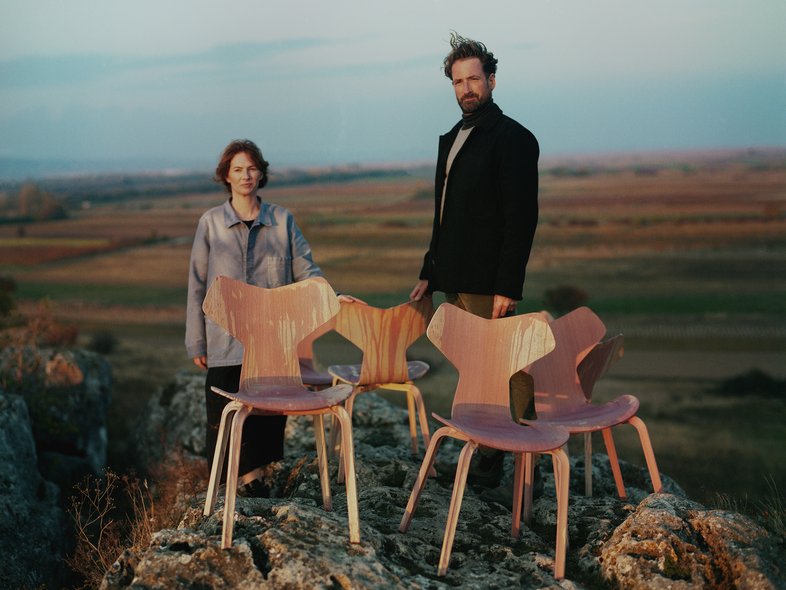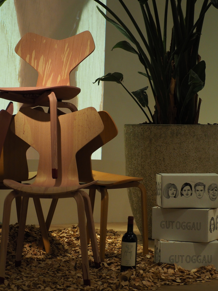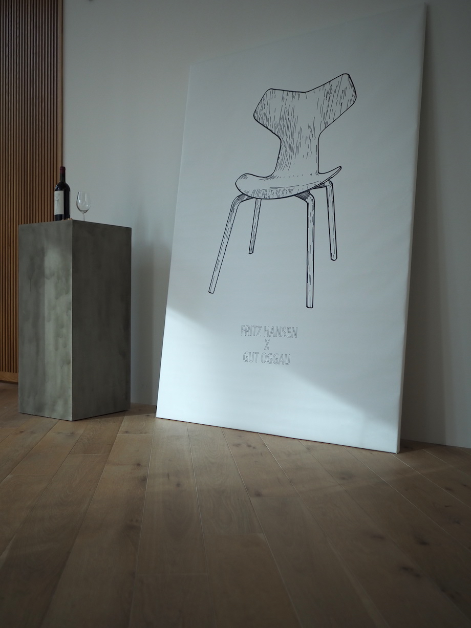 Fritz Hansen is a Danish furniture manufacturer that has gained worldwide fame through the production of designs by renowned designers such as Arne Jacobsen, Hans Wegner or Borge Mogensen. Gut Oggau is also internationally acclaimed for its excellent wine and good corporate design. So why not collaborate? Wine is a natural product, and wood is too. We combine these two products by dyeing the chairs with wine. For this purpose, we have chosen a classic: the famous Grand Prix Chair by Arne Jacobsen. The red wine tints the wood of this design classic with a reddish-brown hue, creating a perfect symbiosis of both worlds. The collaboration will launch from November 2021 in selected Fritz Hansen stores in Copenhagen, Vienna, Tokyo, New York and Seoul.
