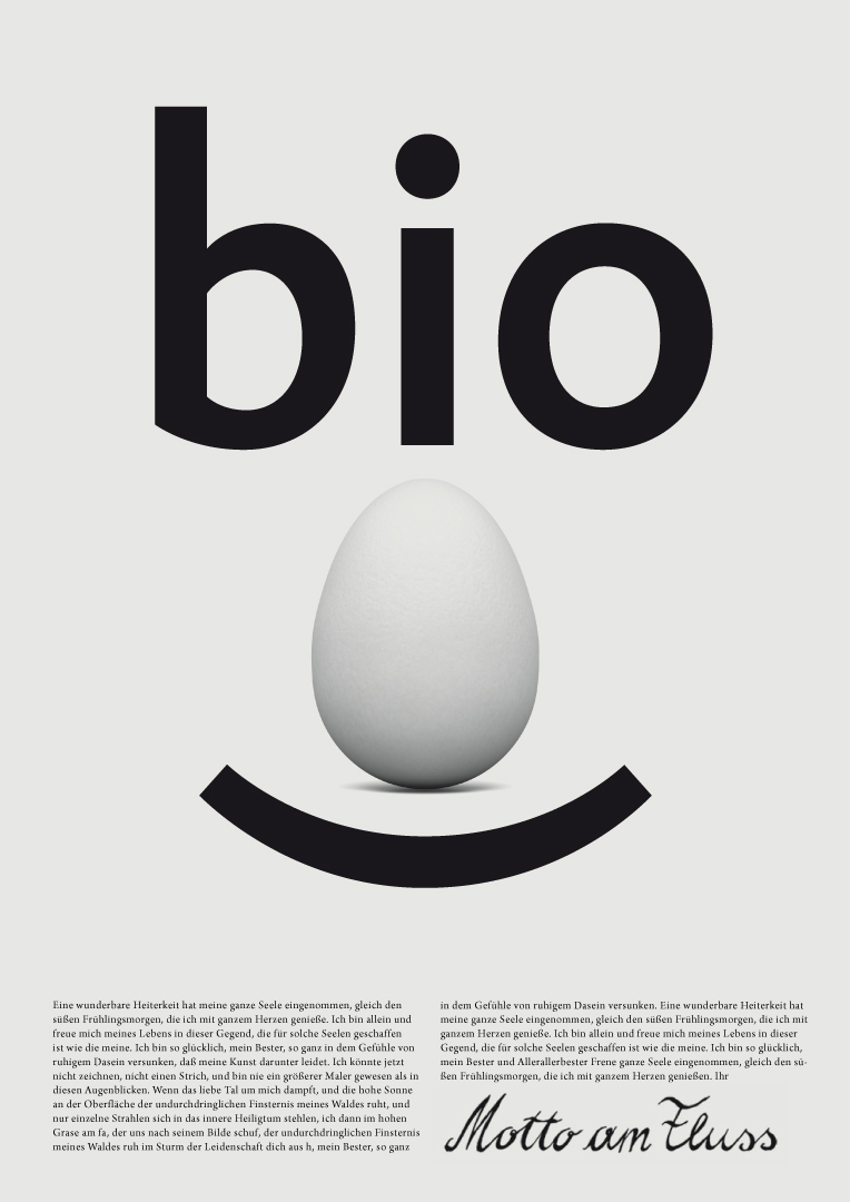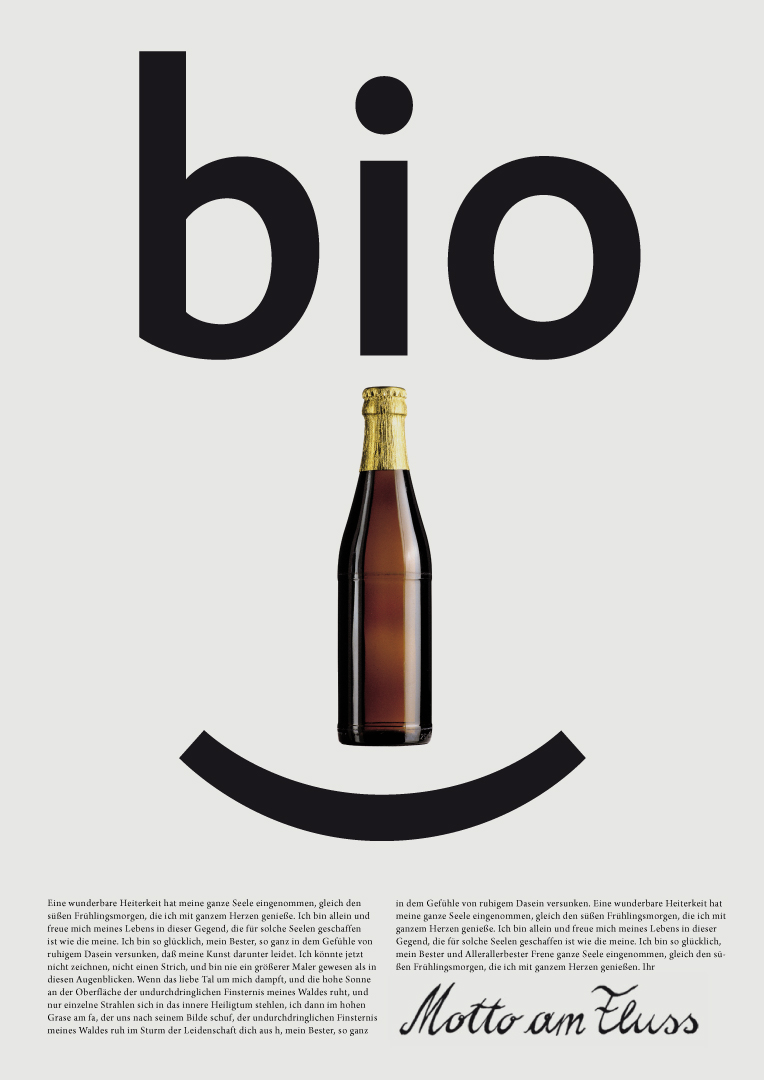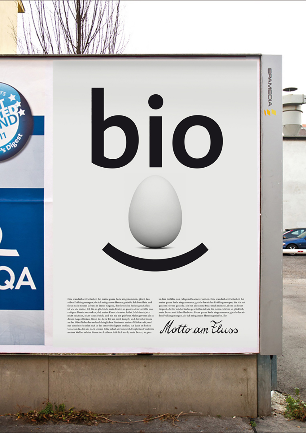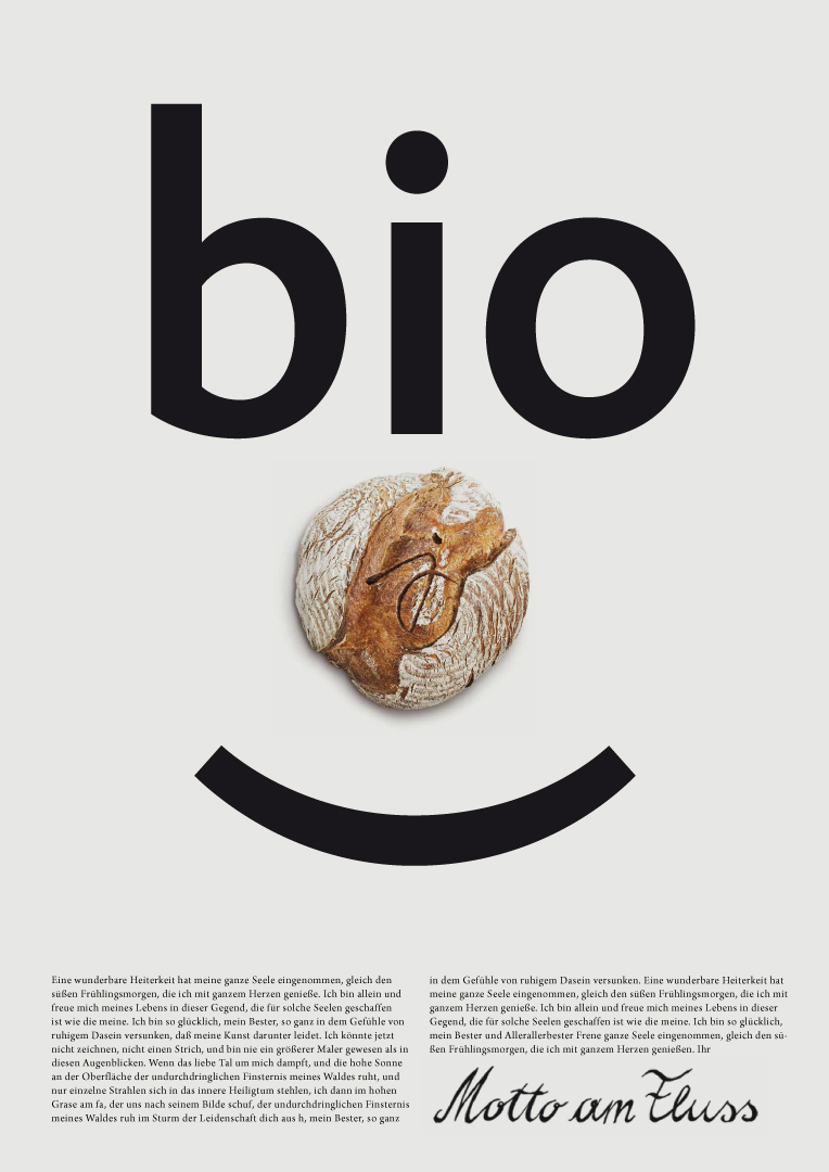 Motto Group is a well-known gastronomy company with multiple restaurants and a hotel in Vienna. The German word "Bio" is short and catchy and means "organic." The briefing for this campaign was concise and straightforward: to feature the organic products of Mottogroup. But in a sympathetic way, without a raised finger. So we took the key elements of the campaign - product, organic and emotion - and got to work. The result were our Bio-motifs that simply bring good vibes and were displayed in all Mottogroup locations: Motto am Fluss, Halle, Kunsthallencafé, and the Motto itself.