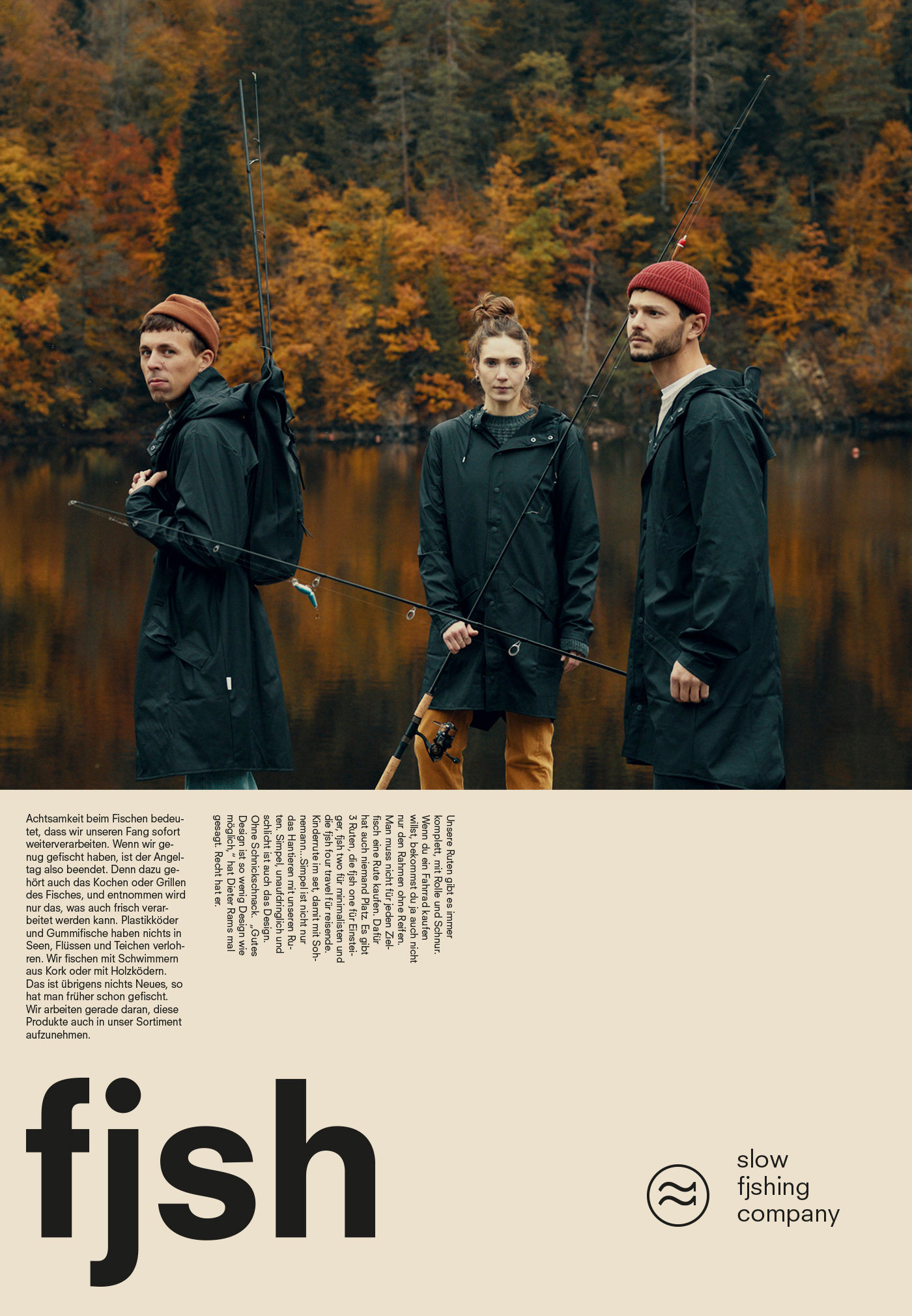 fjsh manufactures fishing rods. Faster, farther, bigger - that's often what it's all about in fishing. But fjsh is different. Catching a fish is certainly not the only goal. It's about enjoying a beautiful day by the water, observing nature and simply taking a deep breath. That's what it's all about, the whole experience. And we call it slow fishing. Back to the rods! Simple, mindful and slow.